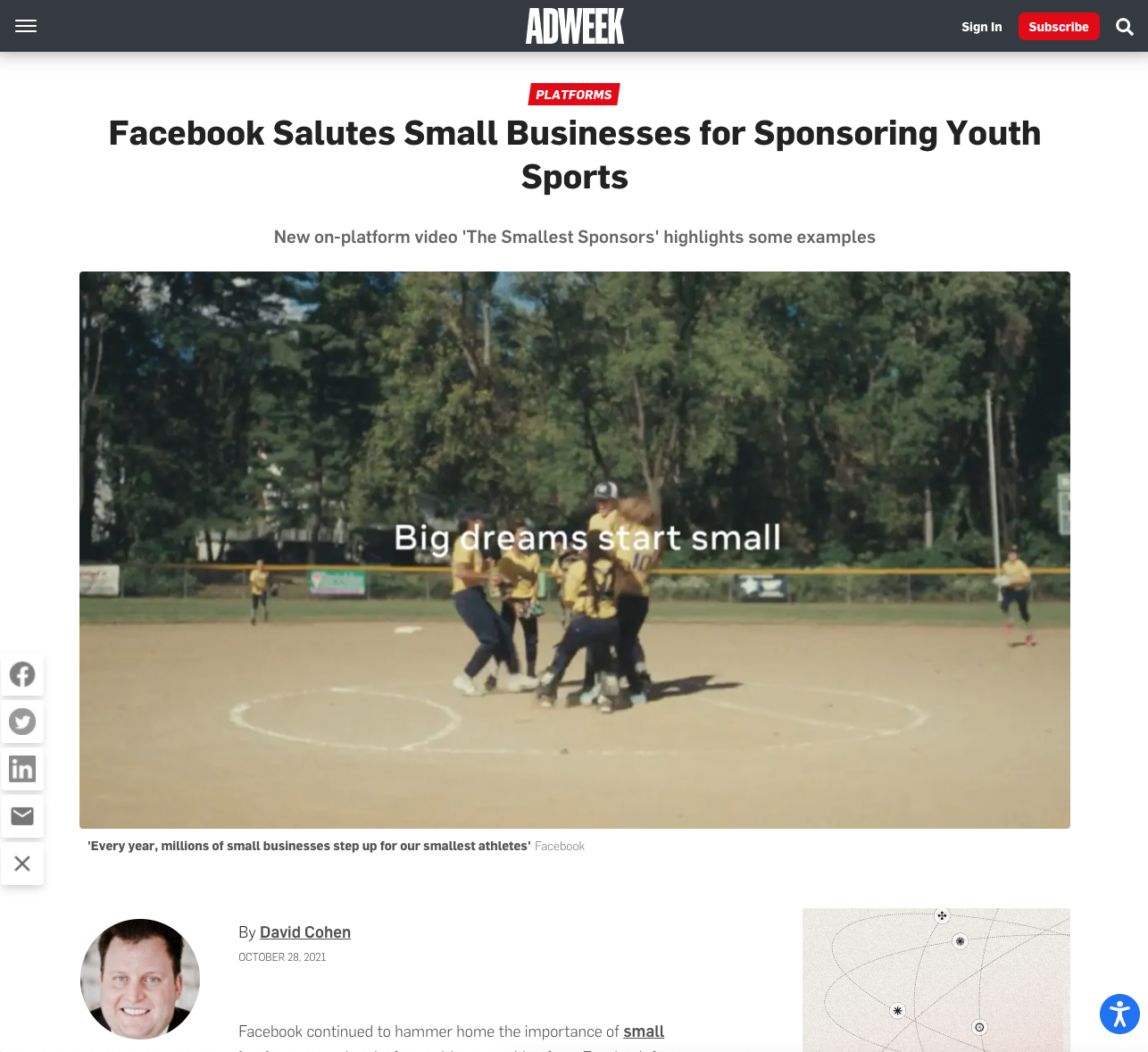 Nike and Visa couldn’t sign Serena or Lebron unless a small business backed them first, when making it big was just a dream. As part of Facebook’s Good Ideas Deserve effort we launched a film to remind people where athletes’ dreams begin.